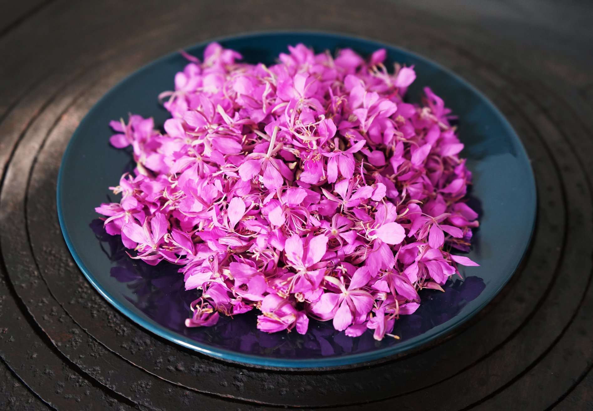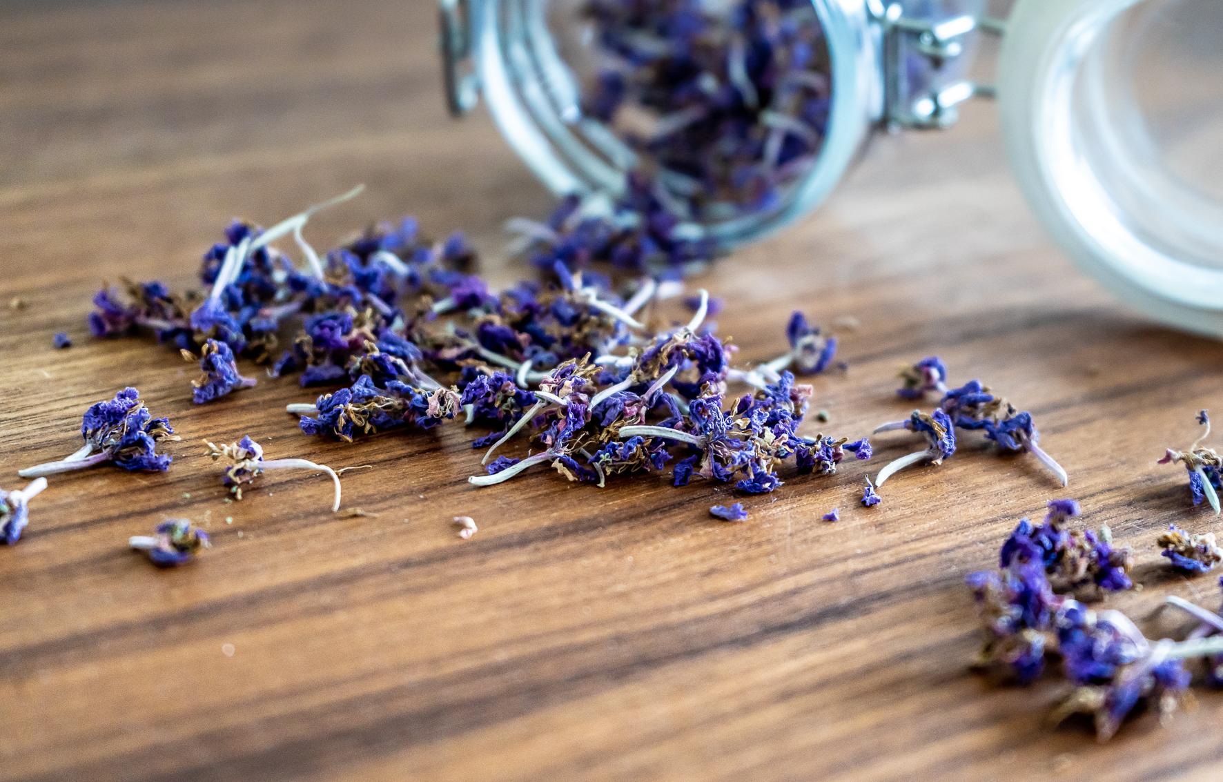 Last week I picked up a lot of fireweed flowers (Chamaenerion angustifolium) and dried them in order to use them in baking and beverages. I collect whole fireweed blossoms and place them on a piece of baking paper. When the flowers dry up, I then separate the small, purple flowers from the stems.